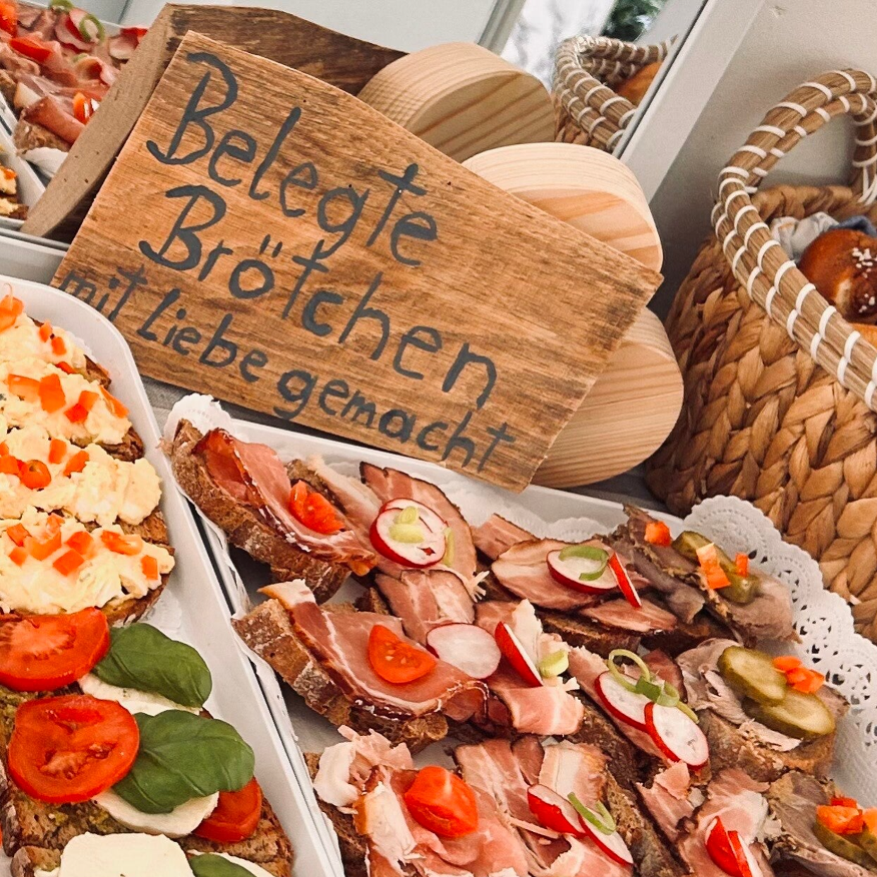 Ob Firmenmeeting, Hochzeit, Geburtstagsfeier oder ein stiller Abschied- wir liefern frisch belegte Brötchen, Feinschmeckerplatten, Fingerfood, Mehlspeisen und Getränke.